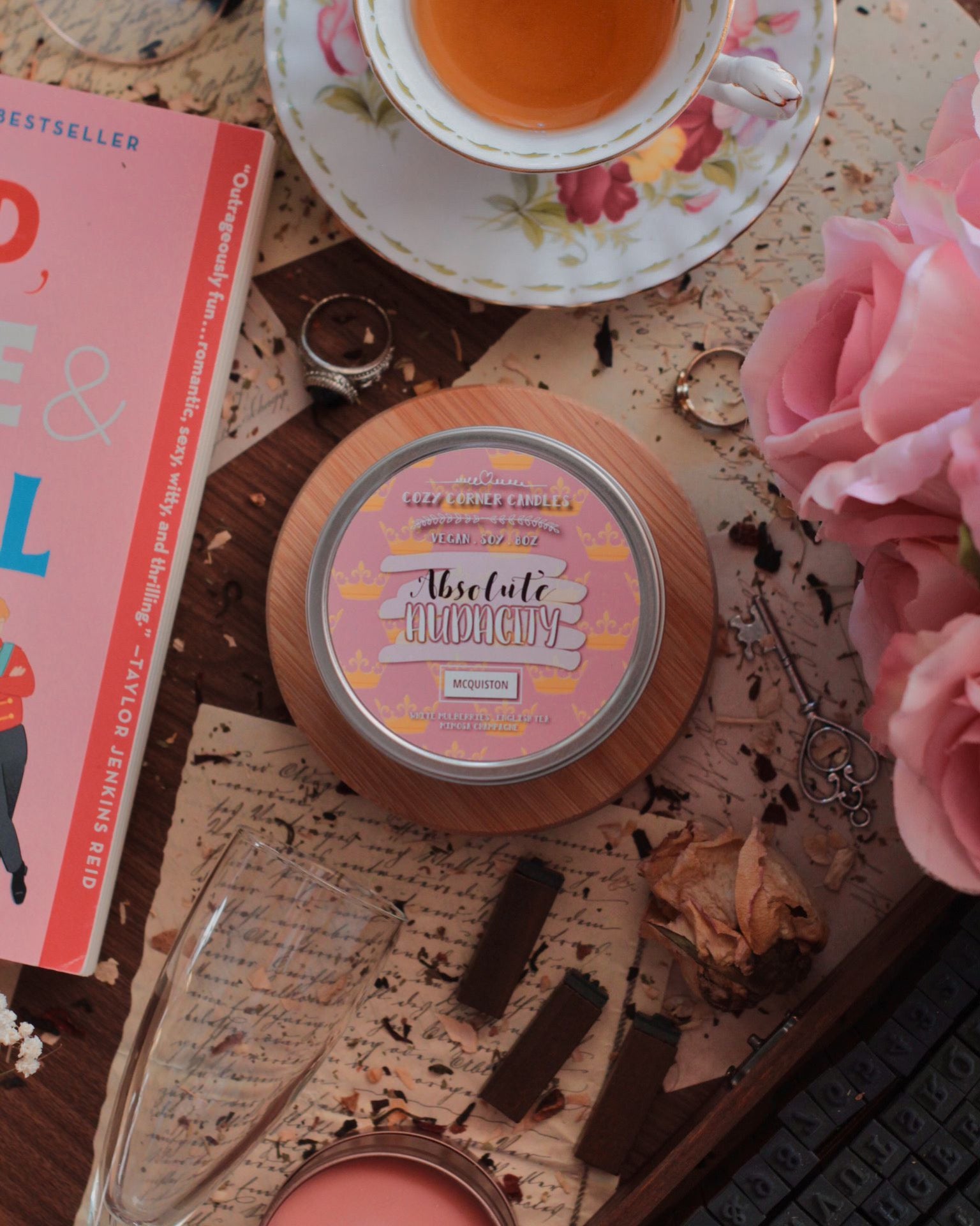 8oz Wood Wick Silver Tin inspired by Red, White & Royal Blue smells like White Mulberries, English Tea & Mimosa Champagne!