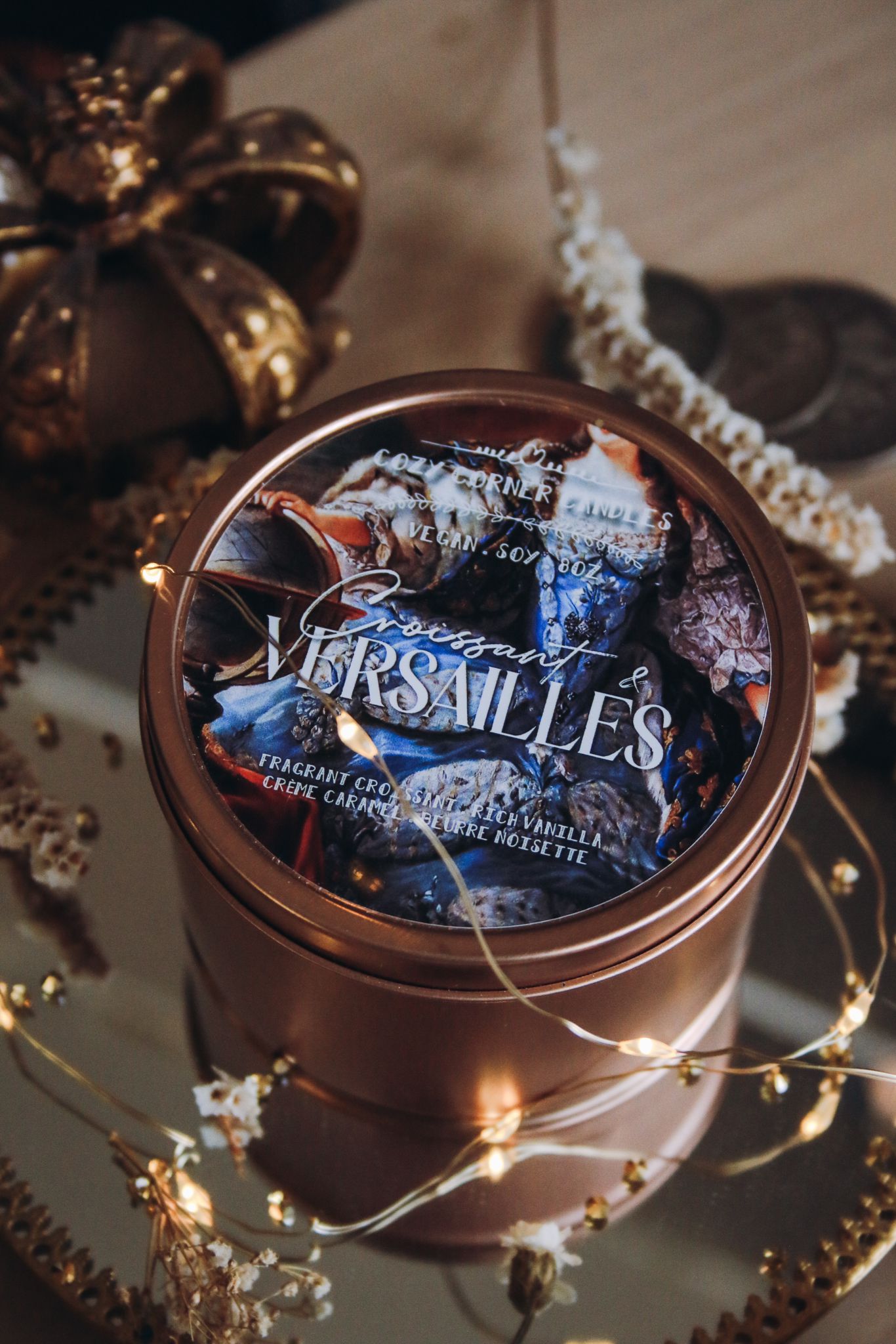 8oz Wood Wick Rose Gold Tin Candle inspired by Versailles.