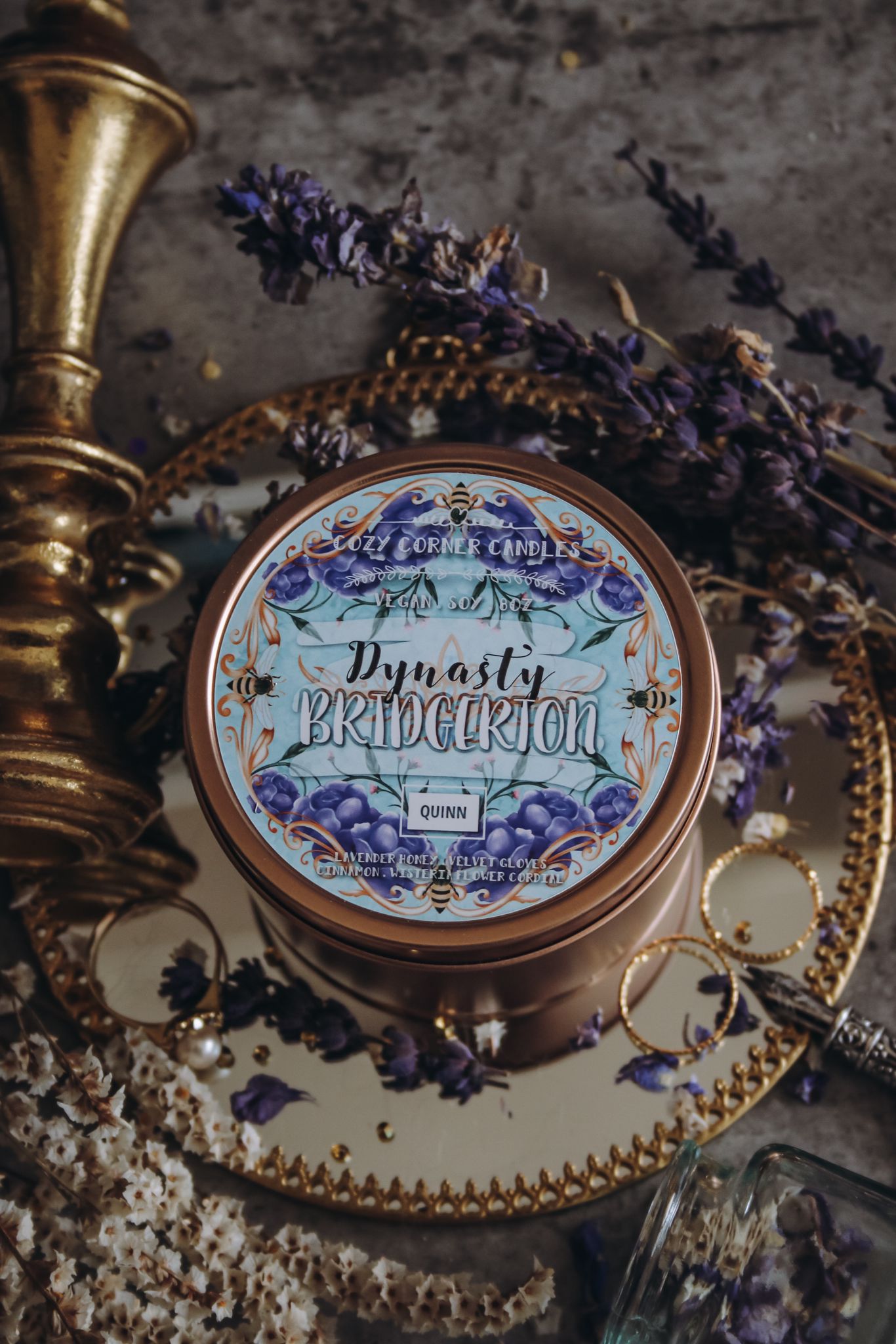 8oz Wood Wick Rose Gold Tin Candle inspired by Quinn Netflix "Bridgerton".