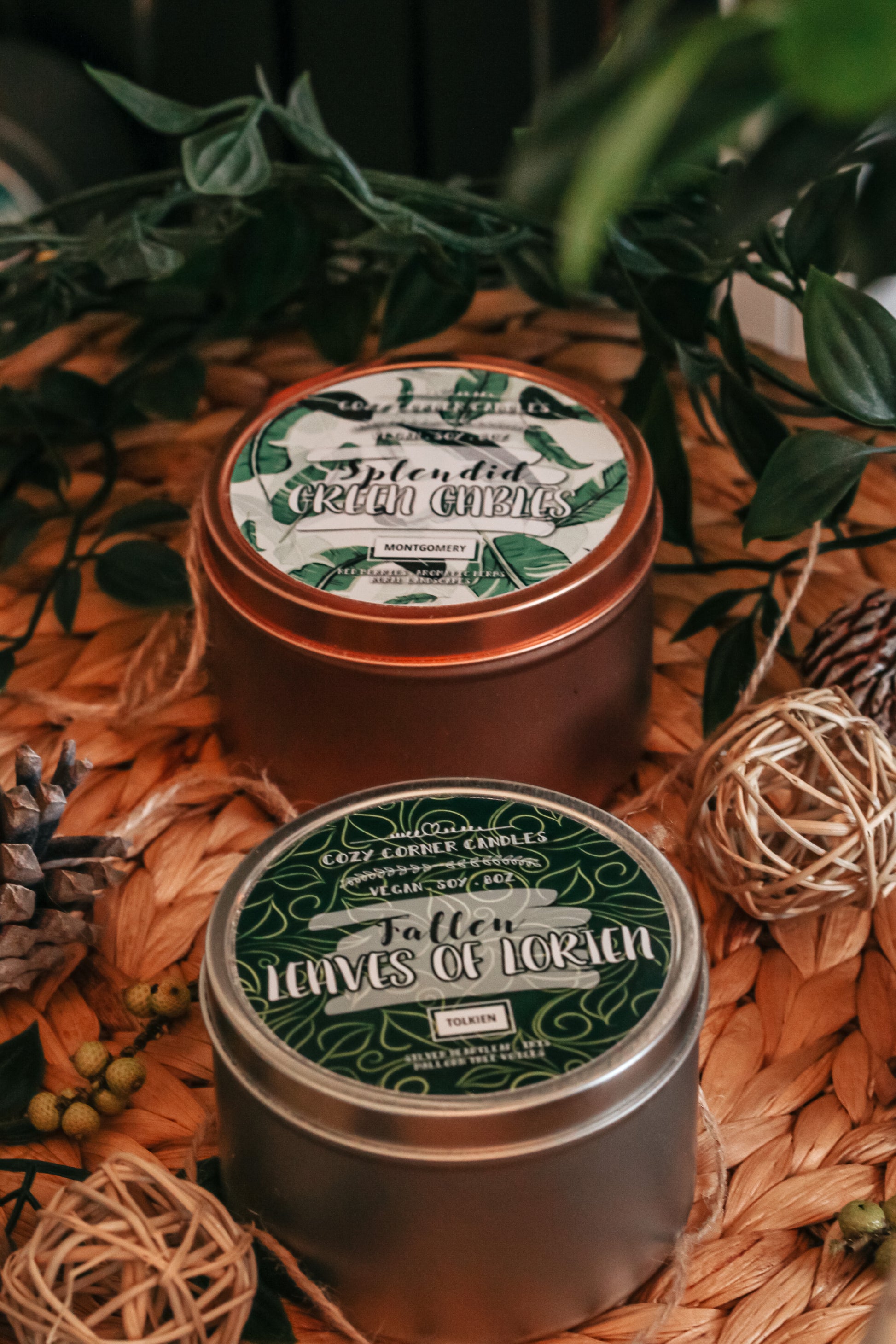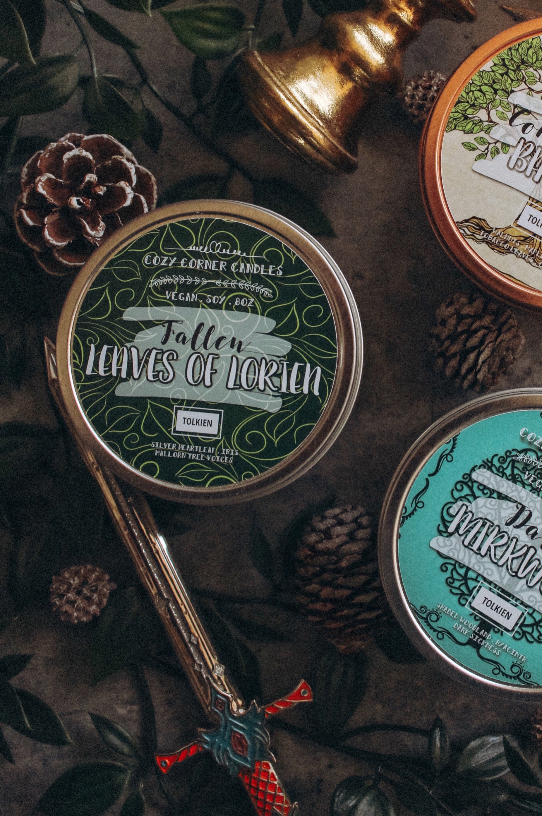 8oz Wood Wick Silver Tin Candle inspired by The Lord of the Rings smells like Silver Heartfeaf, Iris & Mallorn Tree Voices!