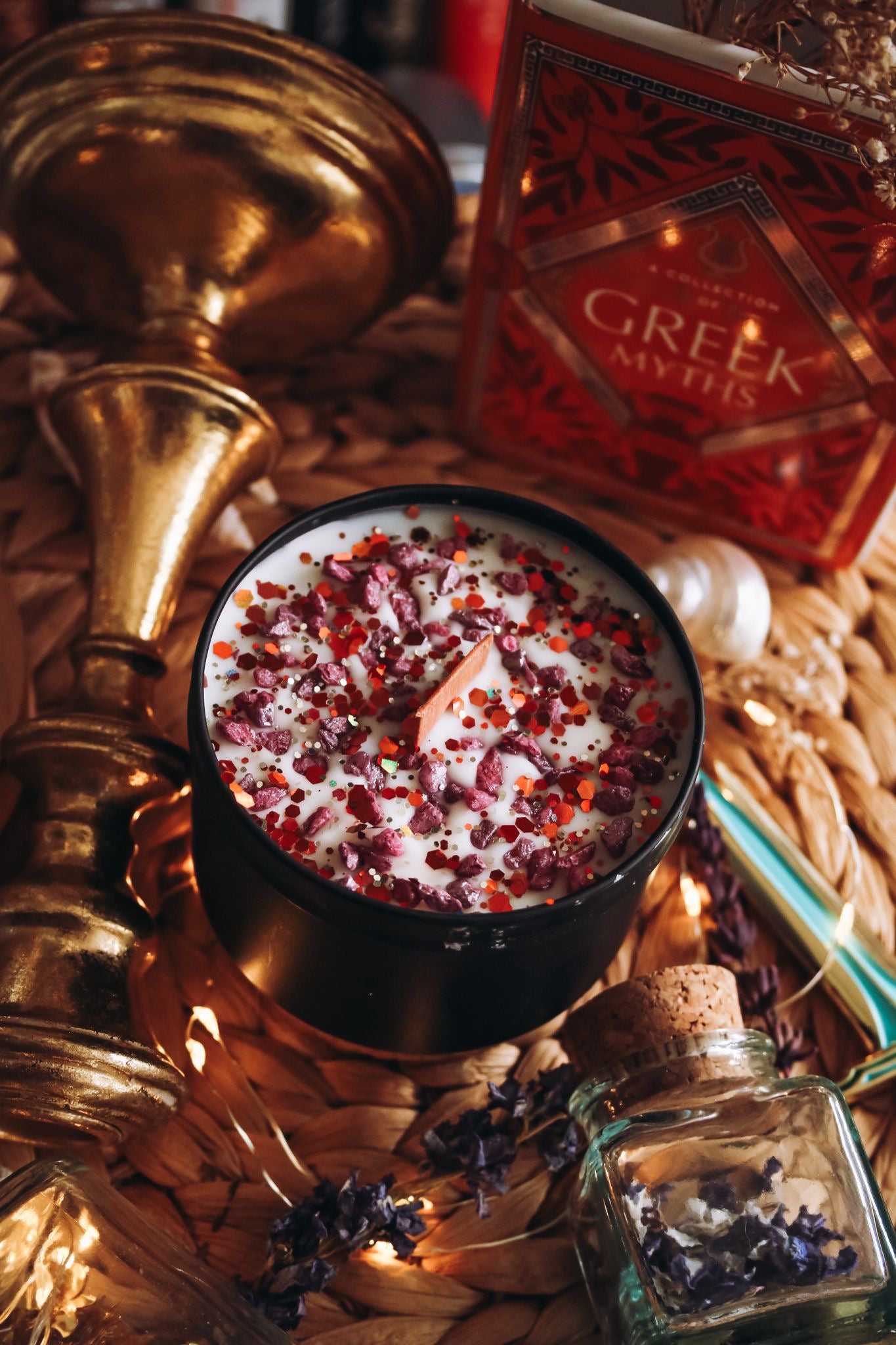 8oz Wood Wick Black Tin Candle inspired by Disney classic "Hercules".