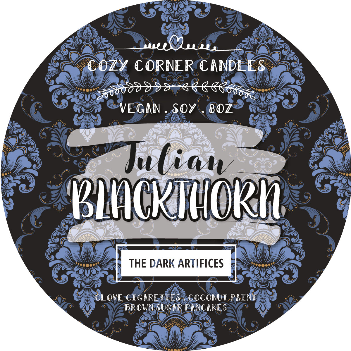8oz Wood Wick Black Tin Candle inspired by Cassandra Clare's Shadowhunters, smells like Clove Cigarettes, Coconut Paint & Brown Sugar Pancakes!