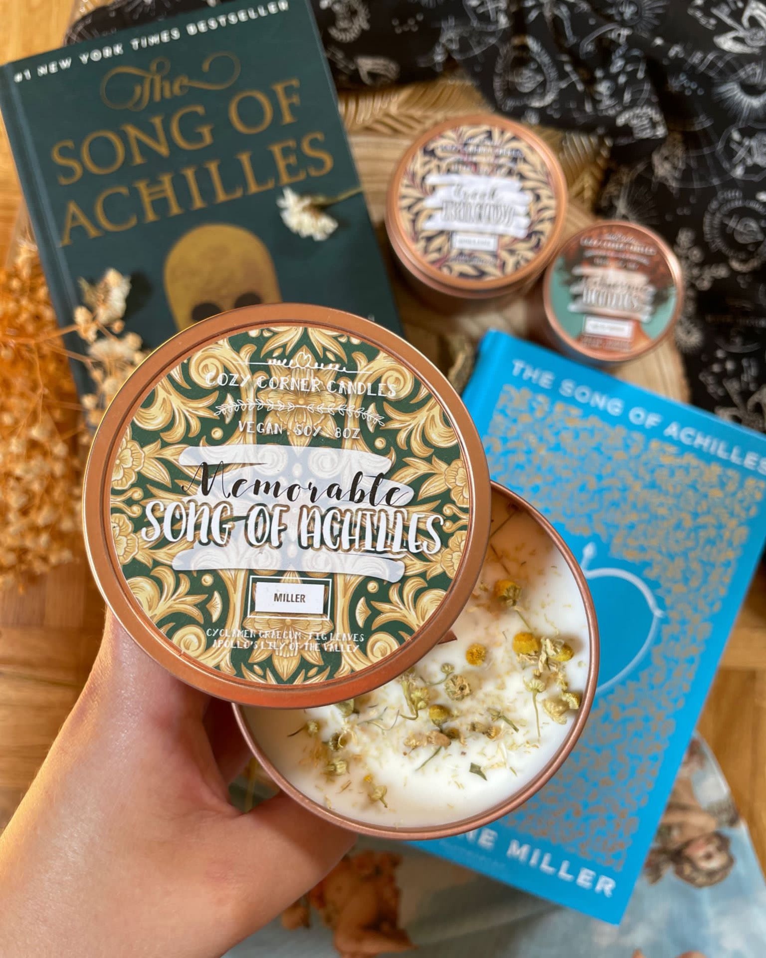 8oz Wood Wick Rose Gold Tin Candle inspired by "The Song of Achilles" by M. Miller.