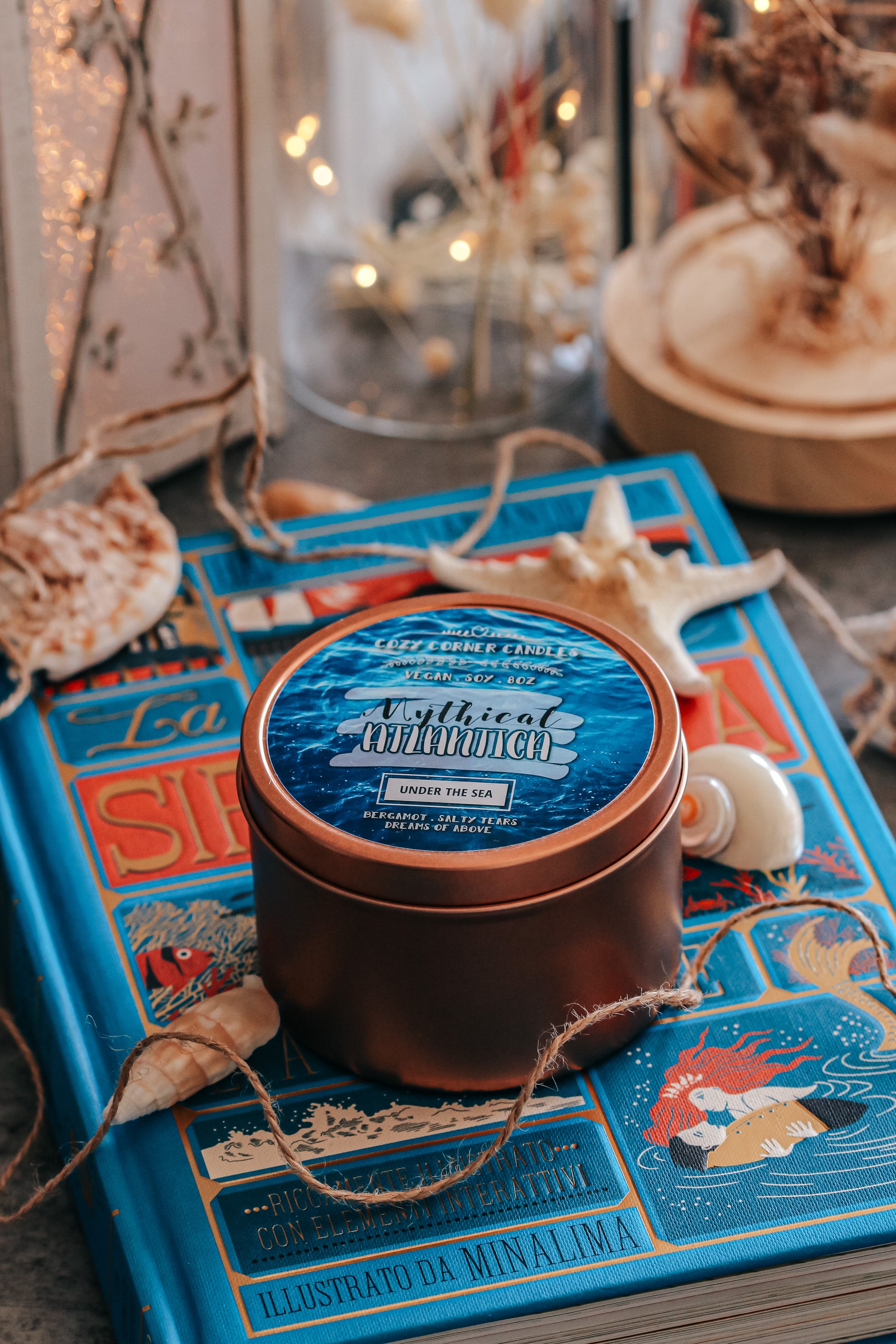 8oz Wood Wick Rose Gold Tin inspired by The Little Mermaid smells like Bergamot, Salty Tears & Dreams of Above!