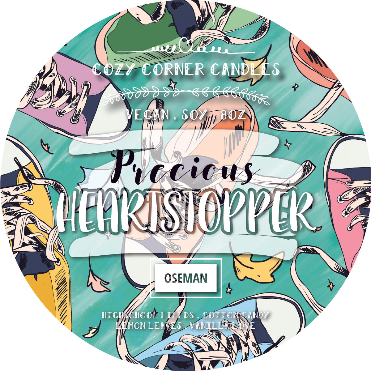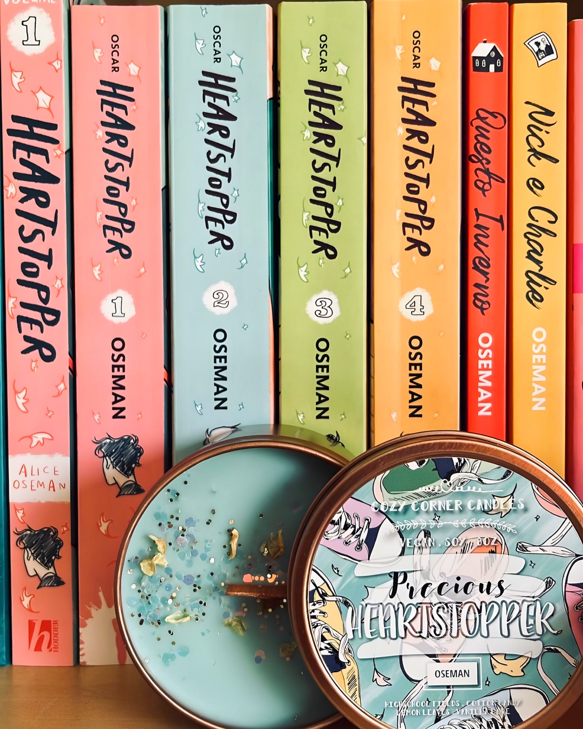 8oz Wood Wick Rose Gold Tin Candle inspired by Alice Oseman's "Heartstopper" serie, smells like Highschool Fields, Cotton Candy, Lemon Leaves & Vanilla Love!