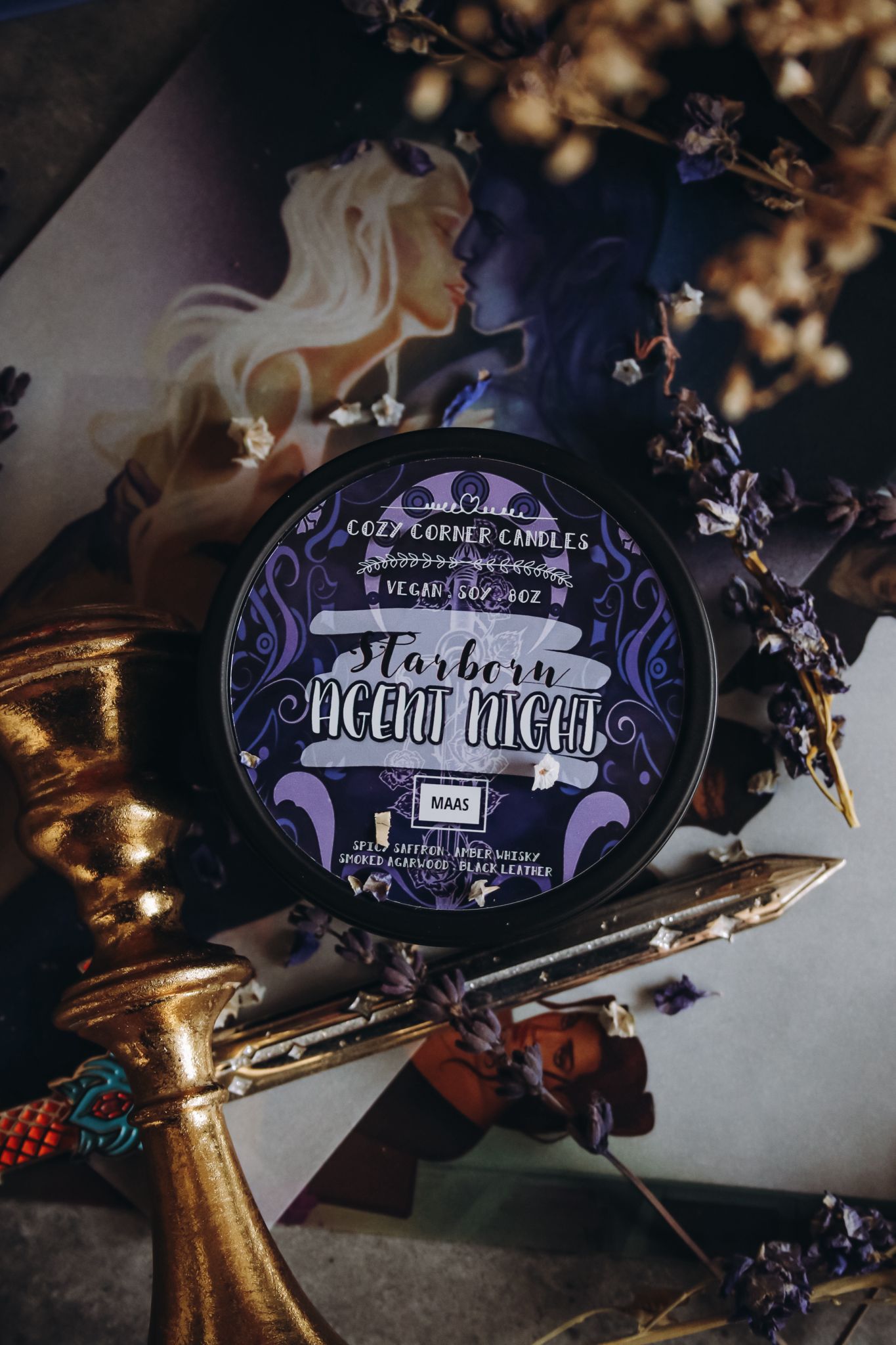 8oz Wood Wick Black Tin Candle inspired by Maas "Crescent City".