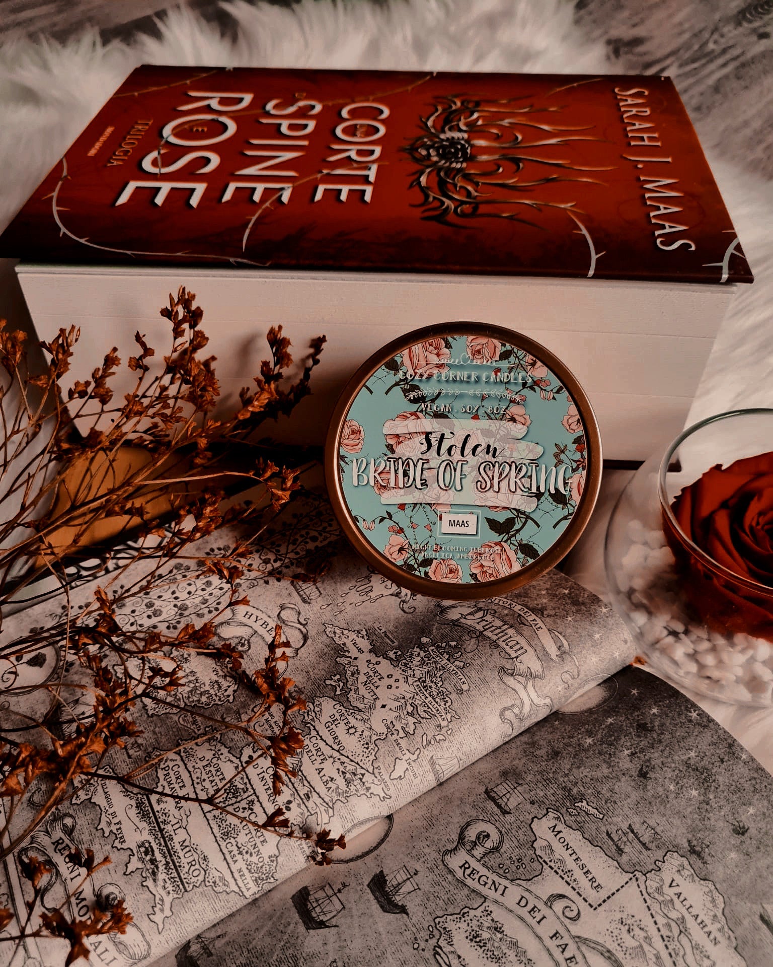 8oz Wood Wick Rose Gold Tin Candle inspired by SJM A Court of Thorns and Roses, smells like Night Blooming Tuberose, Angelica & Amberwood!