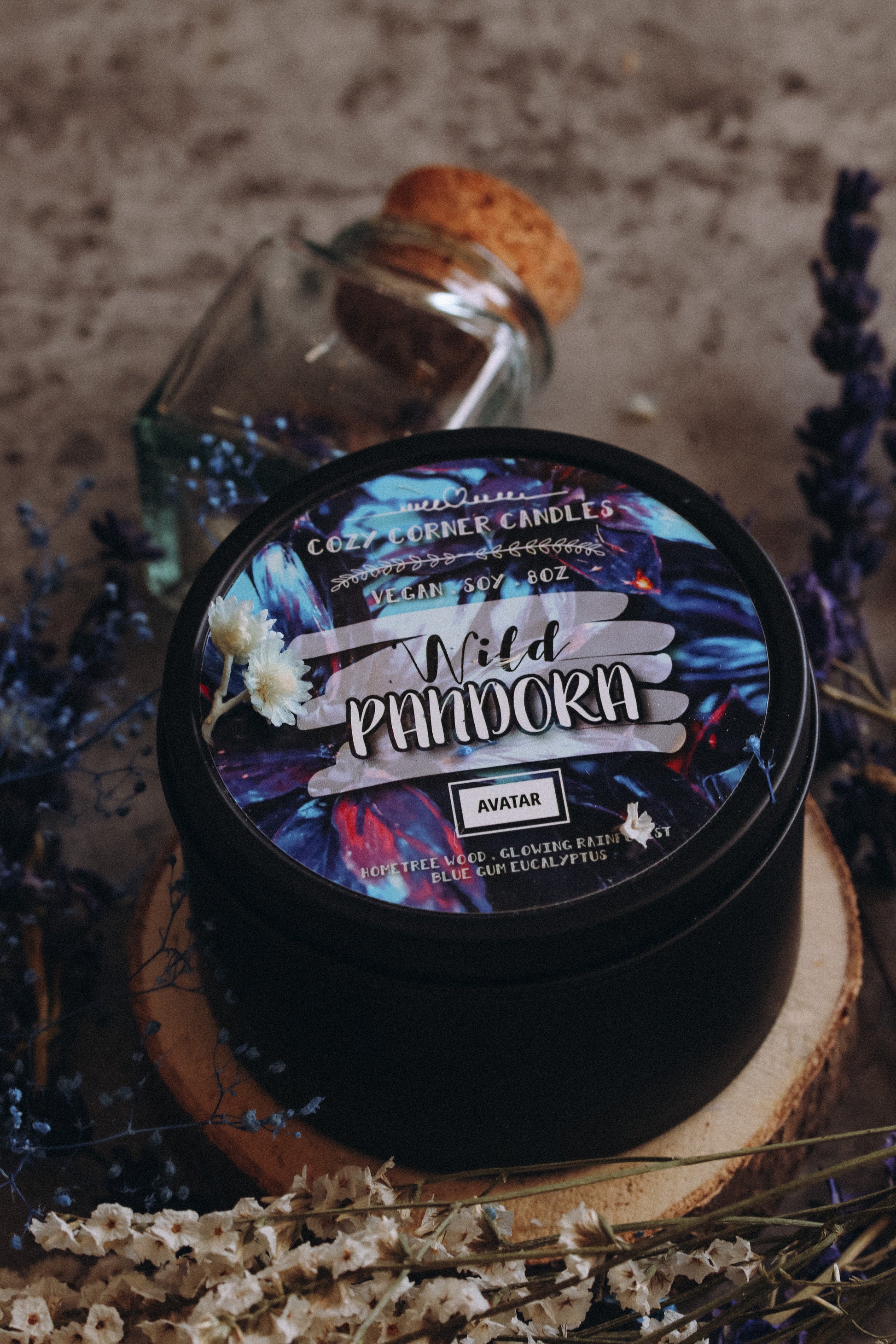8oz Wood Wick Black Tin Candle inspired by Cameron's "AVATAR"!